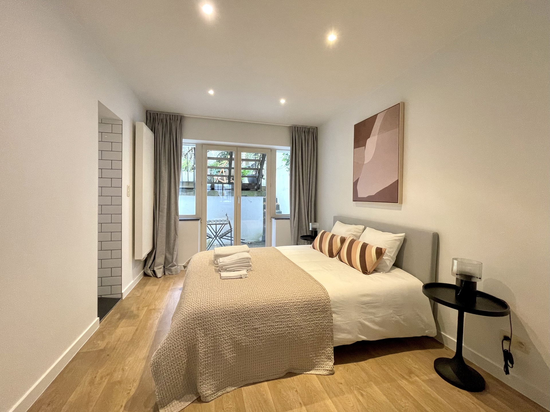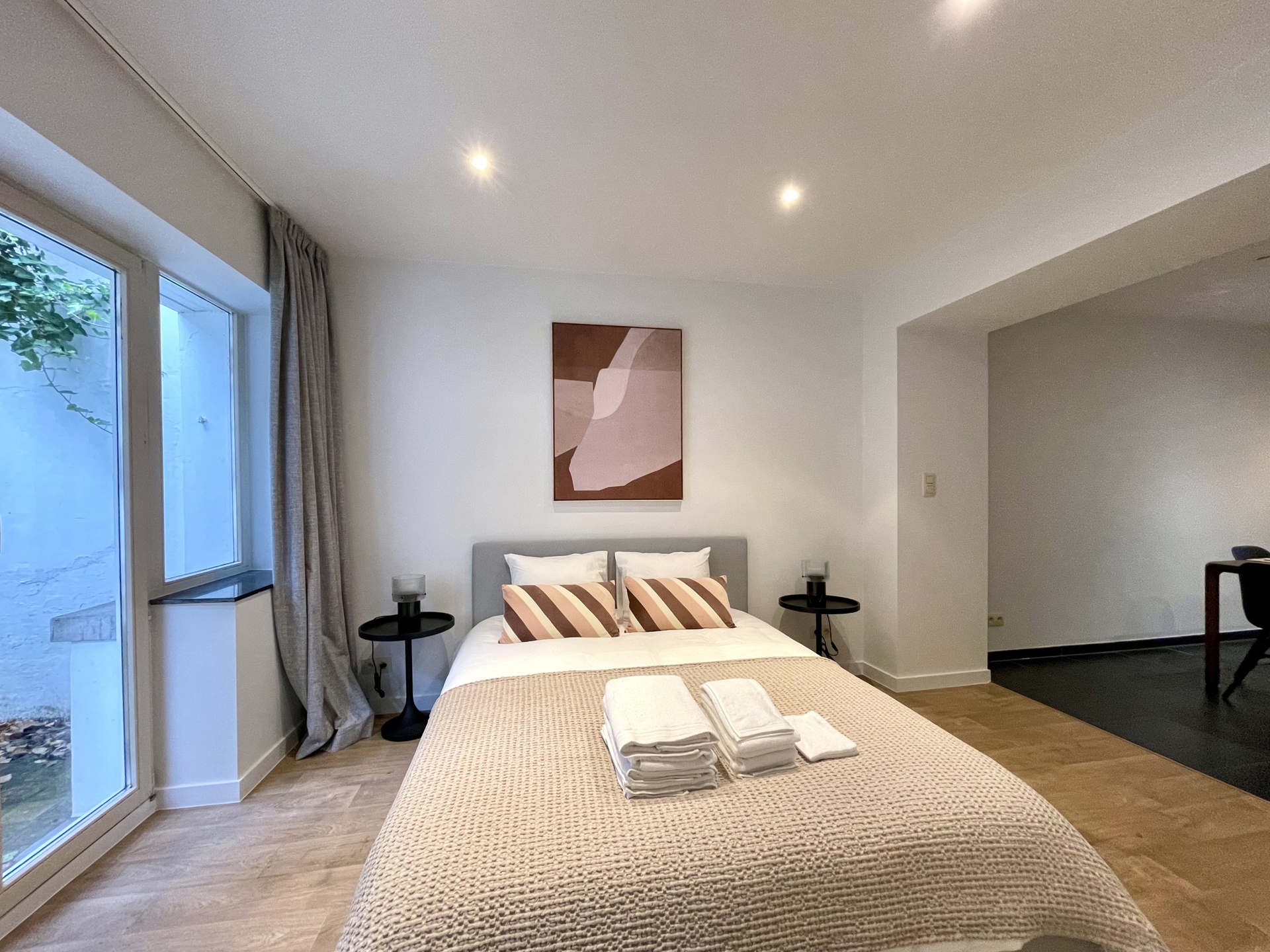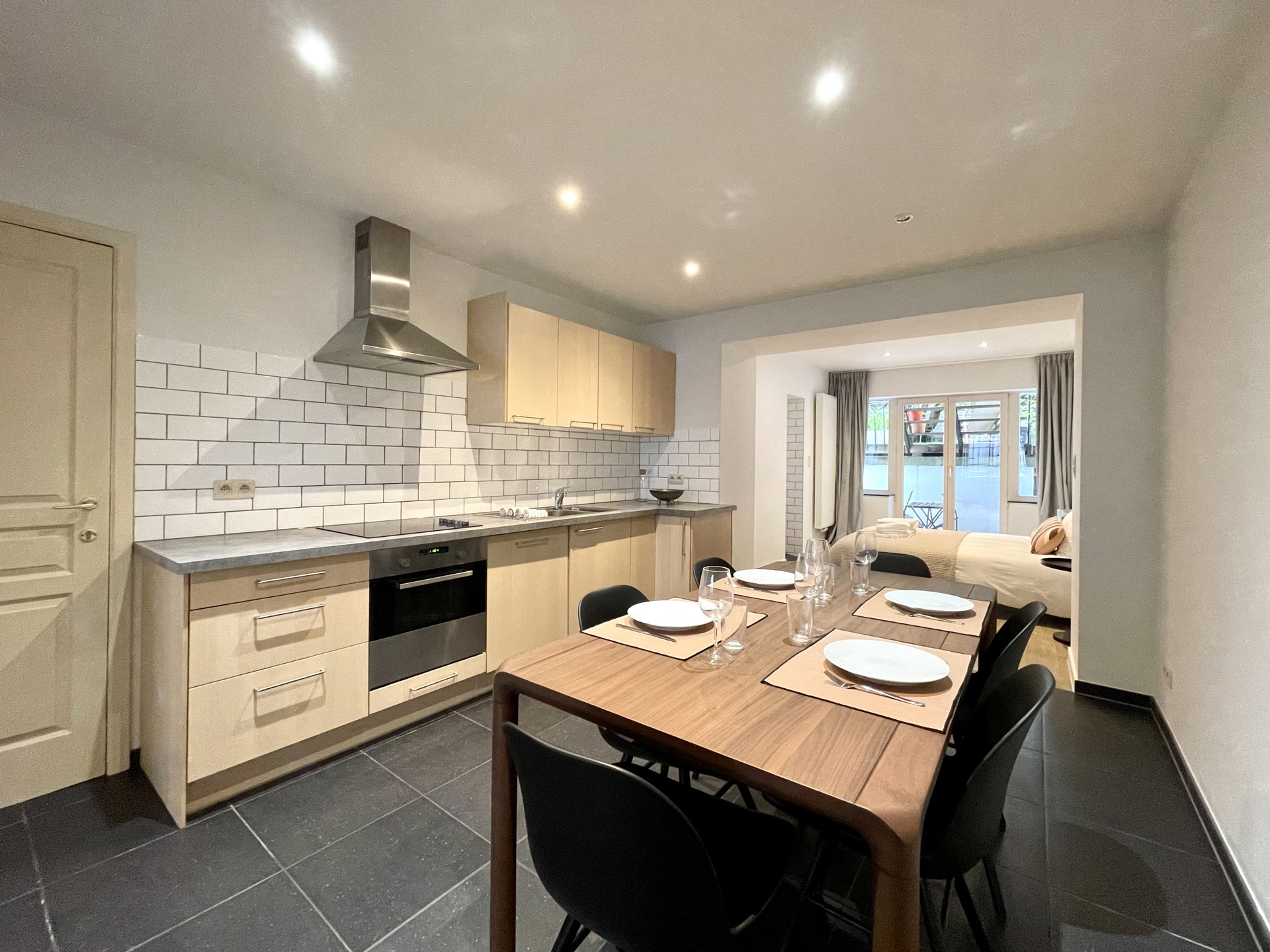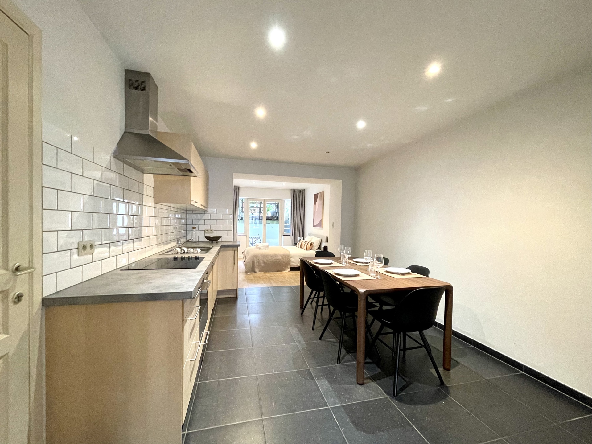 In de buurt van de Louise Avenue tussen Chatelain en het Ter Kamerenbos , begane grond GEMEUBELEERD met 3 kamers in een rij met een open keuken en een slaapkamer en badkamer met douche en toilet, aparte wasruimte , individuele gasketel .